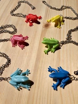 - Stretchy Rubber Frog - Approx. 18 inch length chain (adjustable to wear long or choker style) - Lobster clasp